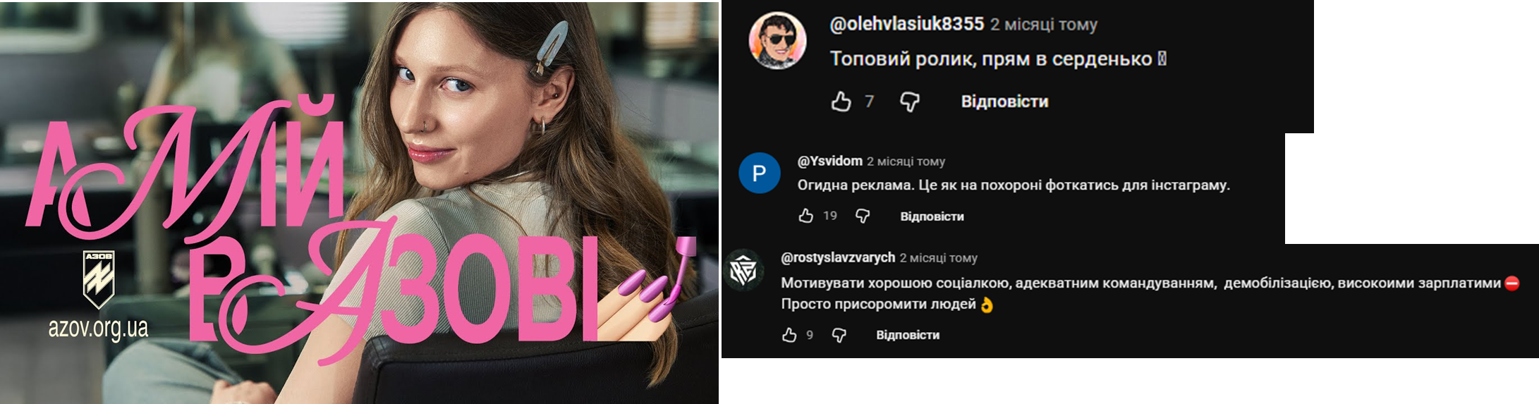 До креативу бригада повернулася вже влітку цього року з серією роликів “А мій в «Азові»”. Кампанія швидко набрала популярність у соцмережах і стала предметом активного обговорення: одні оцінюють її як чесний і влучний спосіб комунікації, інші критикують за можливе приниження тих, хто не служить, або за романтизацію війни. Водночас вона демонструє новий підхід до рекрутингу, де роль родини та суспільної свідомості стає ключовою для мотивації до служби.