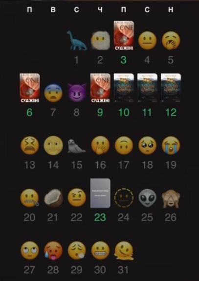 Також система емоджі в календарі Rork (другий скріншот) діє як інструмент візуального докору, адже коли замість обкладинки книги на певній даті з’являється випадкове емоджі (частіше смайлик, з негативною емоцією), день автоматично маркується як «непродуктивний». Це активує почуття провини за відпочинок.