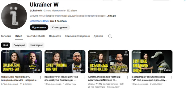 Ukraїner W подає окремі аналітичні або документальні відеосюжети, у яких комплексно розкриваються історії жінок через їхню професійну діяльність. Медіа наголошує на різноманітності ролей, які виконують жінки: від снайперок і розвідниць до волонтерок, від бойових медикинь до ветеранок. Ukraїner W зосереджується на людських історіях, пережитому досвіді, психологічних аспектах служби, підкреслюючи, що жінка на війні – це не образ «жіночності» або «слабкості», а людина з рішеннями та відповідальністю.