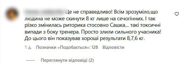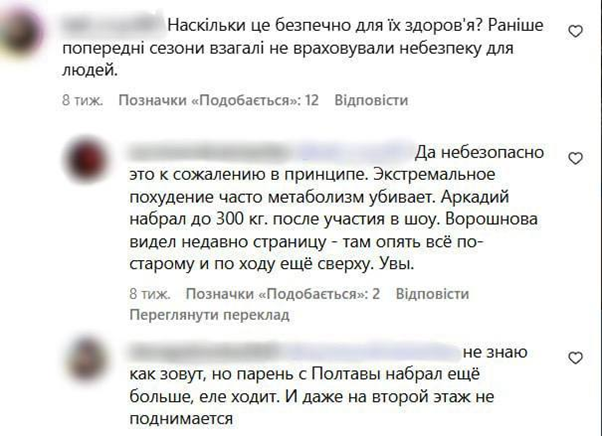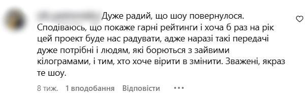 І ось як на допис в Instagram на офіційній сторінці проєкту “Зважені та щасливі” відреагувала одна з глядачок у коментарях: